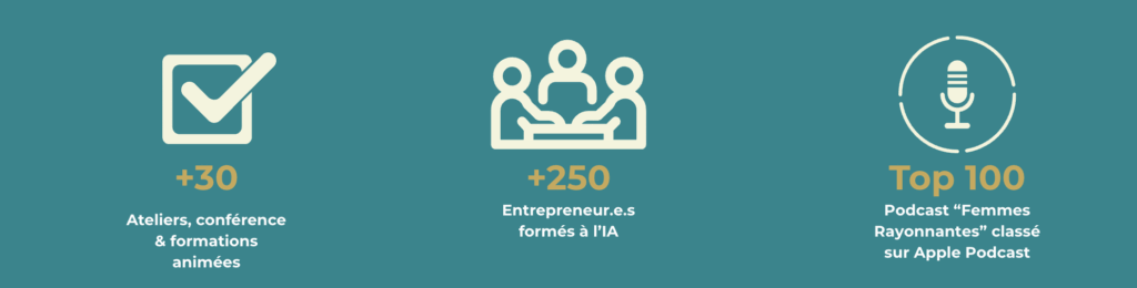 Accompagner la transition vers un entrepreneuriat amplifié par l’IA est ma mission, pour que chacun·e puisse intégrer cet outil déjà indispensable à sa vision, à son organisation et à son développement.
